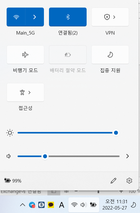 윈도우11 작업표시줄의 가장 오른쪽에는 네트워크/사운드/배터리의 묶음 아이콘과 날짜아이콘이 있습니다.